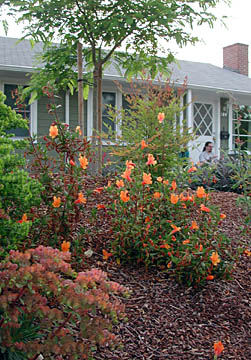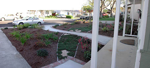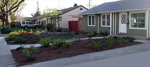 California | | | | After removing a diseased hedge and replacing the back fence, the owners needed new landscaping to replace the hedge. Plants were chosen based on size, neatness, color, and in some cases, fragrance. |