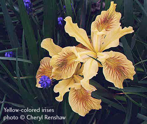 Many Pacific Coast iris hybrids are available that haven't been given a name. This is a subset of the nameless irises I've grown; these all have yellow, orange, or apricot flowers.
